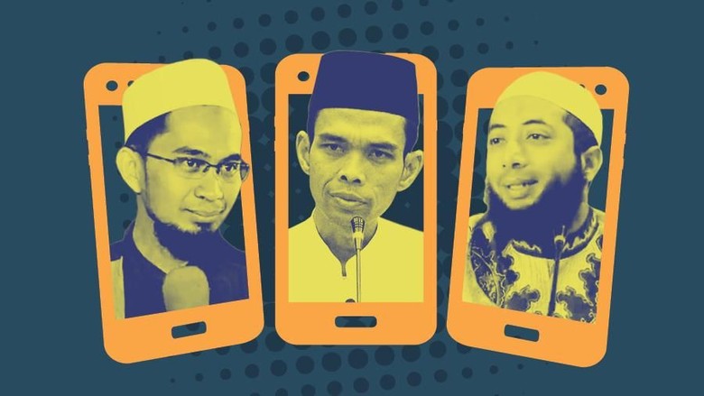 Dari sekian nama yang berseliweran di media sosial, detikcom mencatat antara lain Adi Hidayat, Khalid Basalamah, dan Abdul Somad, yang punya banyak pengikut. Selain aktif berceramah, Adi dan Somad juga memproduksi dakwa tertulis. Sejak 2010 sampai 2015, Adi menulis 11 buku, sedangkan Somad, yang mengajar di beberapa sekolah tinggi tinggi di Riau, telah menulis 4 buku. "Semua buku saya dapat di-download gratis," kata Somad dalam sebuah ceramah yang ditayangkan YouTube.