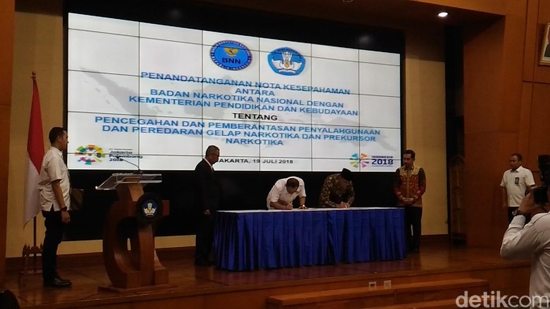 Mendikbud Muhadjir Effendy dan Kepala BNN Heru Winarko menandatangani nota kesepahaman. (Samsudhuha W/detikcom)Jakarta -Ada banyak jenis narkoba gres yang masuk Indonesia. Narkoba gres itu disebut mencapai 94 jenis.